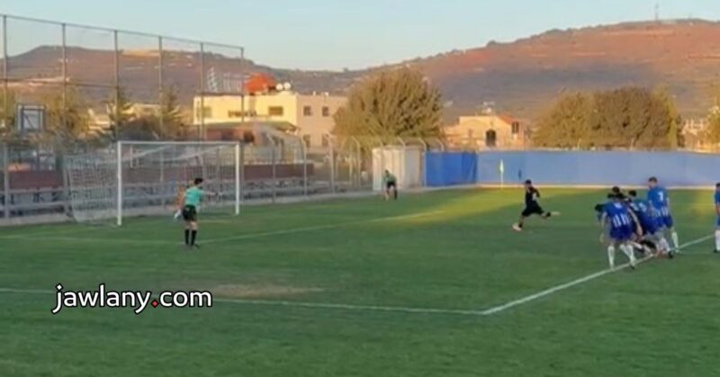 وفي اللحظات الأخيرة، احتسب الحكم ضربة جزاء لصالح أبناء الجولان بعد عرقلة واضحة على اللاعب ناجي أبو جبل داخل منطقة الجزاء، ترجمها باسل القضماني بنجاح إلى هدف الفوز الوحيد، ليعلن الحكم بعدها نهاية اللقاء بانتصار أبناء الجولان بهدف دون مقابل.