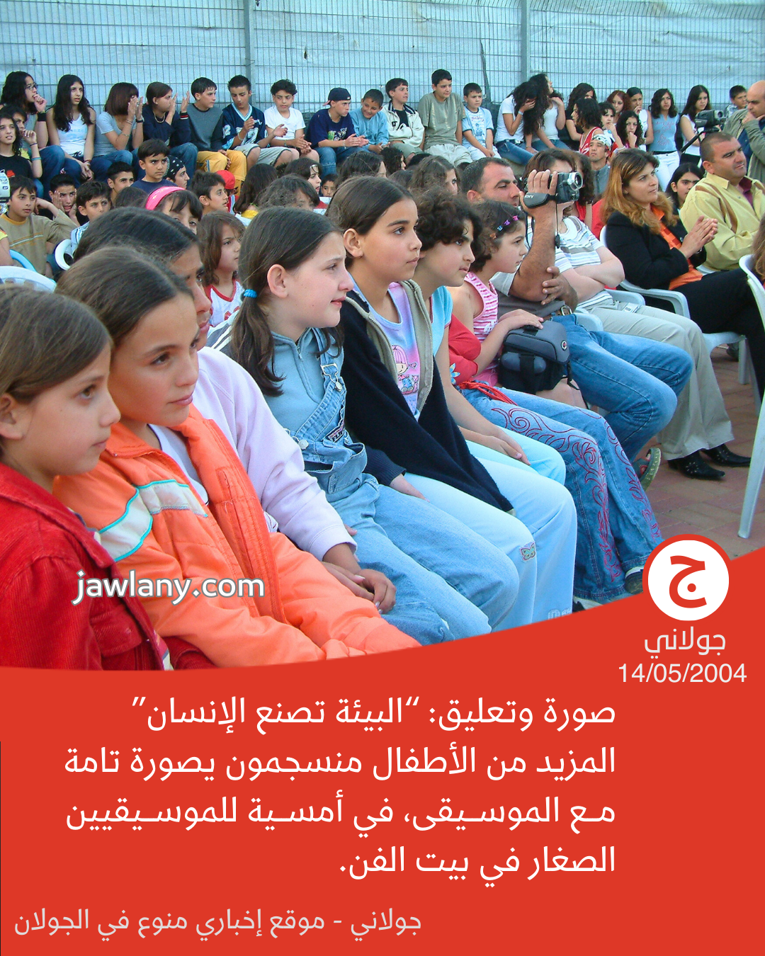 لا زلت أتذكر حين التقطت هذه الصورة كما لو كان ذلك اليوم. كان ذلك في يوم 14/05/2004، أثناء أمسية موسيقية في بيت الفن، قدّم خلالها الأطفال الذين كانوا يتعلمون الموسيقى في المركز عرضًا استعرضوا فيه مهاراتهم الموسيقية أمام أهاليهم وجمهور من الحضور.