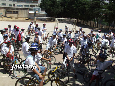 والإعدادية في القرية. الفعالية كانت تحت عنوان: "الدراجة وسيلة كباقي وسائل النقل
