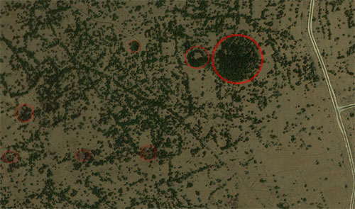 ويمكن رؤية هذه الحفر بوضوح من السماء، وهي تتميز عن محيطها بكثافة الأشجار