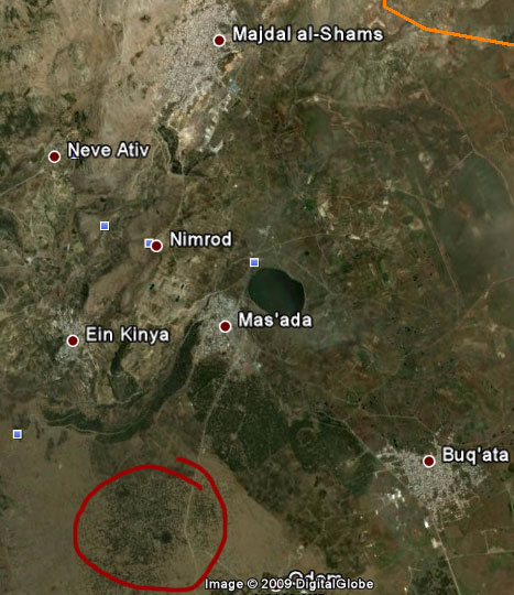 صورة توضح موقع 23 جوبة شمالي الجولان